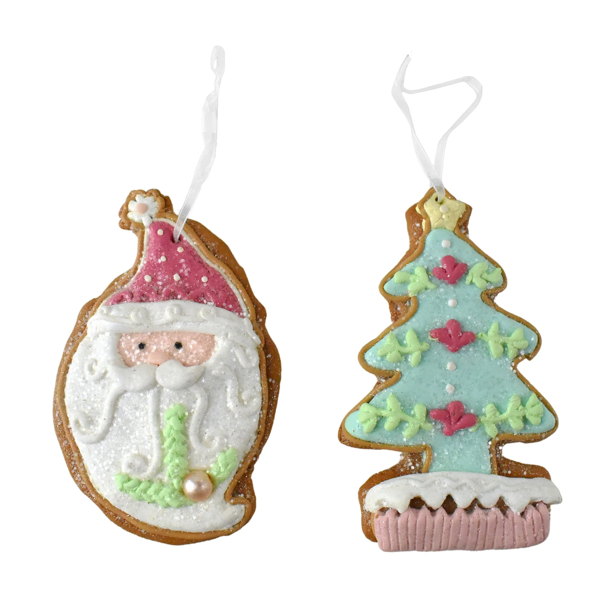 Treat your tree to some holiday cheer with these adorable Christmas cookie friends ornaments! A gingerbread man, snowman, angel, and Santa Claus stand out from the pack and are ready to add to your Christmas decor! They are the perfect size for topping your tree, mantel or fireplace mantle. Pack: 6 pcs Average Ornament Length: 4.75" Average Ornament Width: 3"