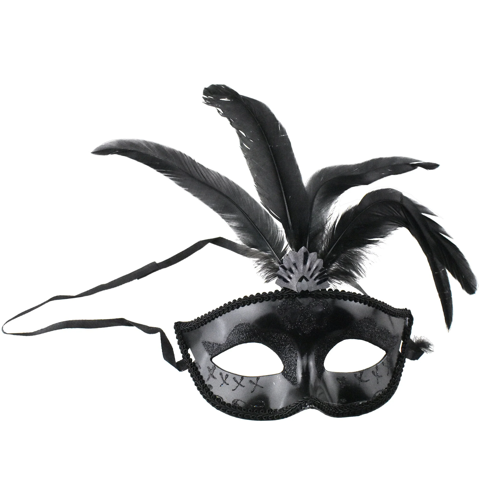 Fancy Feather Masquerade Mask, 7-Inch x 3-1/4-Inch - Black