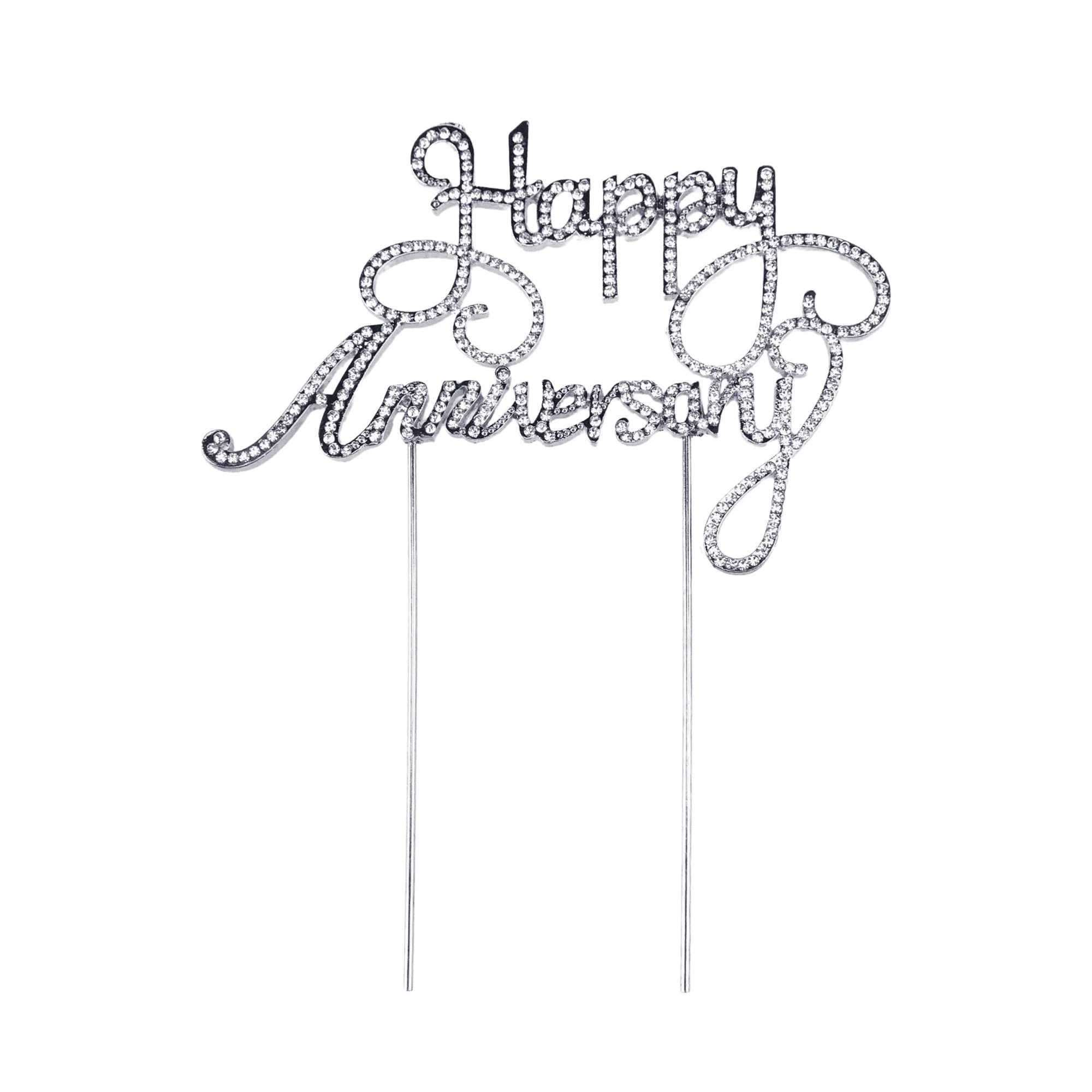 Happy Anniversary Rhinestone Cake Topper, 6-1/2-Inch